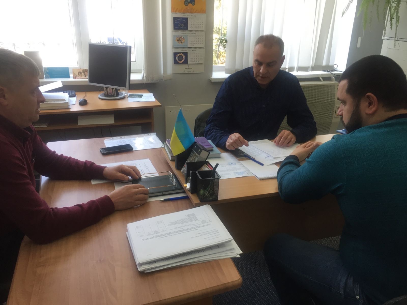 Відбулась робоча зустріч начальника Старокостянтинівської ДПІ Сергія Дем’янюка з головою Староостропільської сільської об'єднаної територіальної громади Юрієм Соломіним та начальником відділу земельних ресурсів, архітектури та будівництва Староостропільської СОТГ Романом Замолінським.