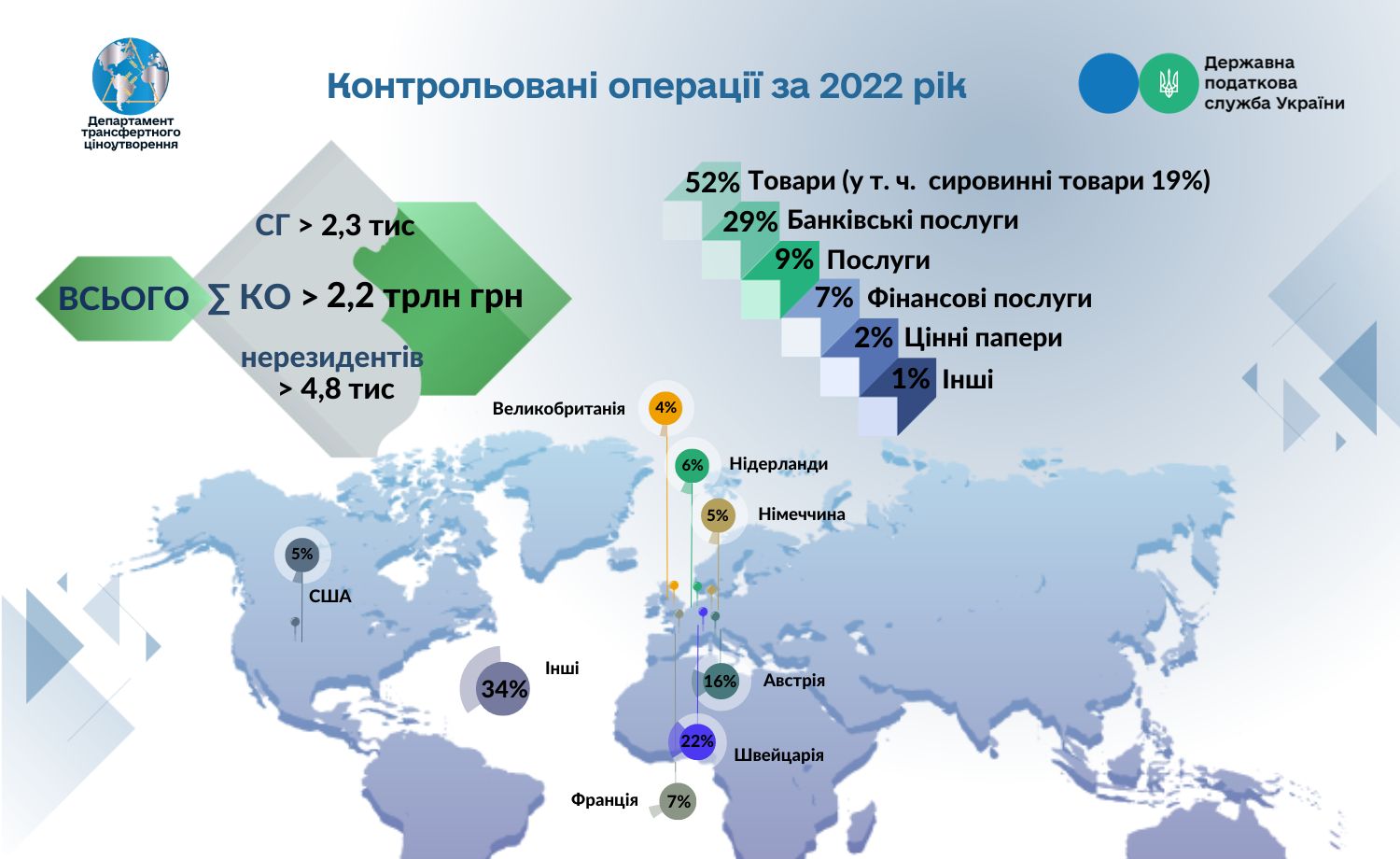 До Державної податкової служби України за результатами 2022 звітного року надійшло 2 292 звіти про контрольовані операції (далі – КО), що приблизно дорівнює минулорічному показнику.