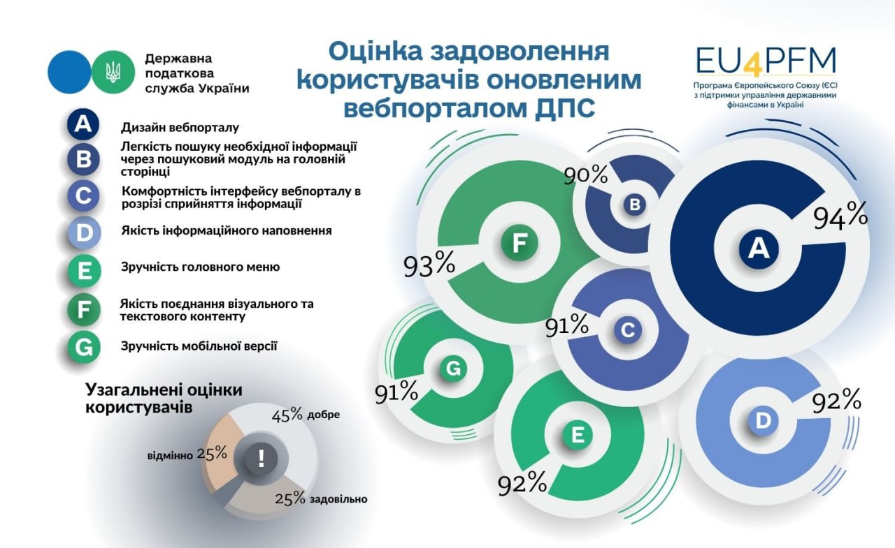 – 25 % користувачів високо оцінили свій досвід користування вебпорталом ДПС;