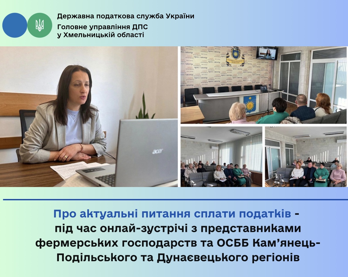 В онлайн заході взяла участь начальник управління оподаткування фізичних осіб Головного управління ДПС у Хмельницькій області Оксана Дмитрієва.