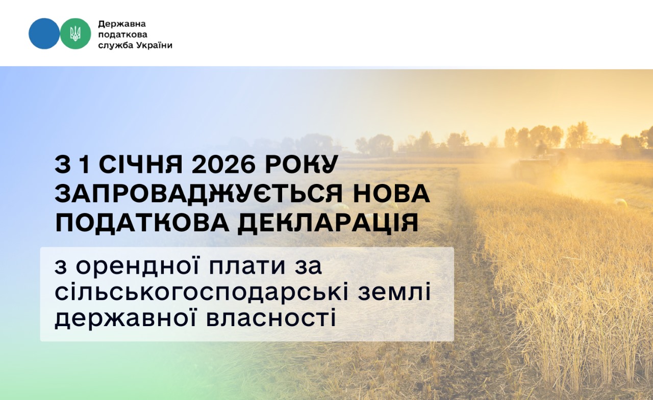 З 1 січня 2026 року запроваджується нова податкова декларація з орендної плати за сільськогосподарські землі державної власності