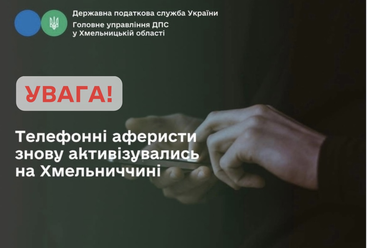 Головне управління ДПС у Хмельницькій області застерігає суб’єктів підприємницької діяльності та громадян області, що знову активізувались шахраї, які телефонують нібито від імені посадових осіб Головного управління ДПС у Хмельницькій області та просять перерахувати гроші.