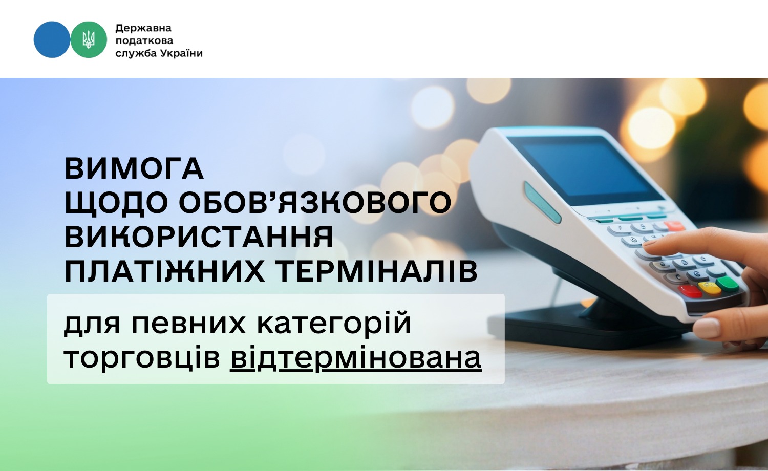 Відтерміновано строки обов’язкового забезпечення безготівкових розрахунків, у тому числі через електронні платіжні засоби, застосунки та платіжні пристрої, для окремих торговців.
