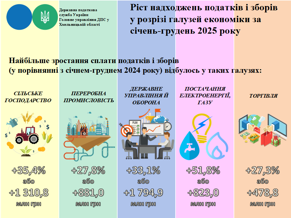 Ріст надходжень податків і зборів у розрізі галузей економіки за січень-грудень 2025 року