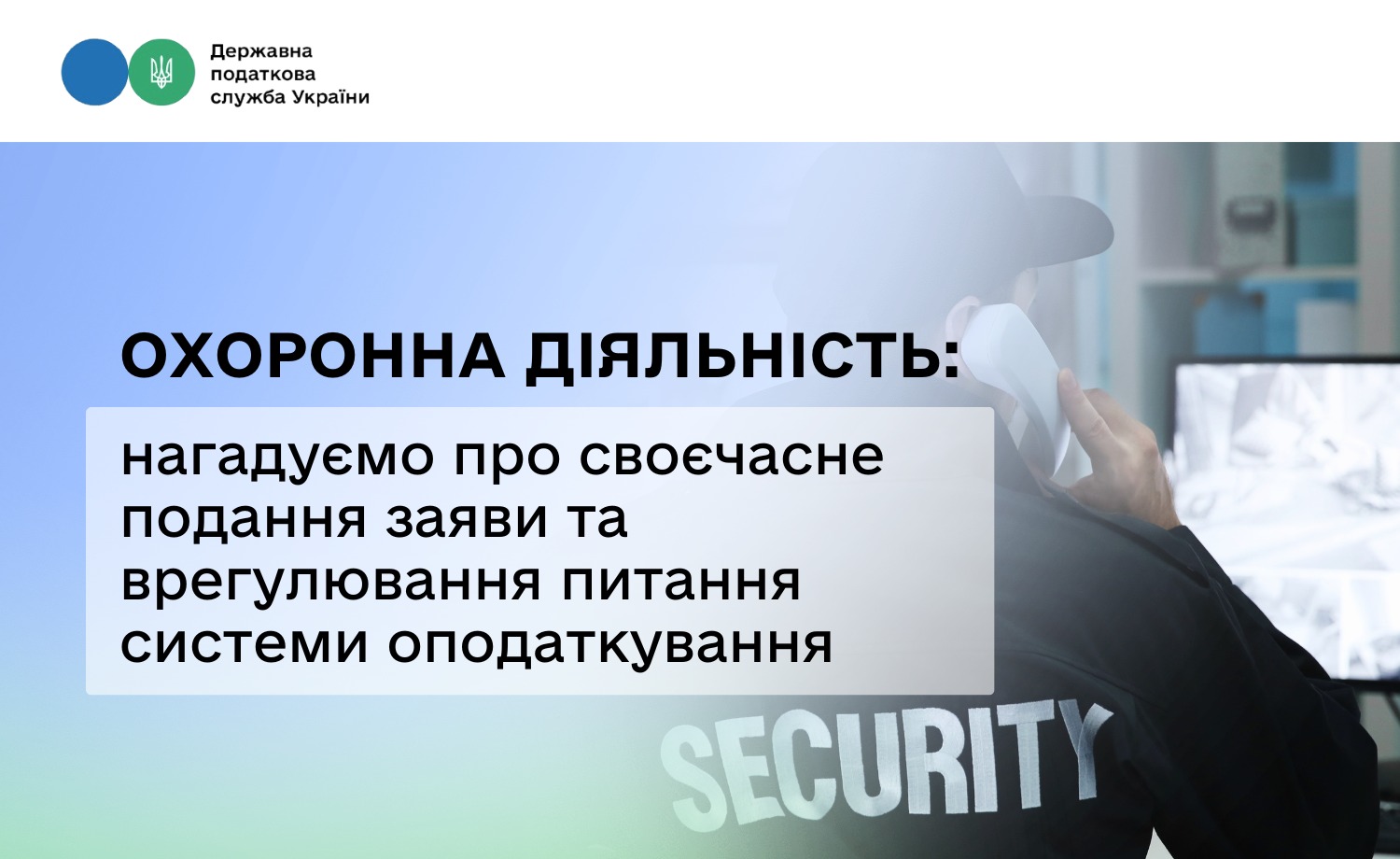 Державна податкова служба нагадує  суб’єктам господарювання, які надають охоронні послуги, про необхідність своєчасно подати заяву про відмову від спрощеної системи оподаткування та перейти на загальну систему.