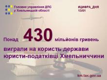 З них на користь територіальних органів ДПС у Хмельницькій області вирішено 506 справ, на суму 433,50 мільйона гривень, що складає майже 60 відсотків від кількості та 73 відсотки від суми.