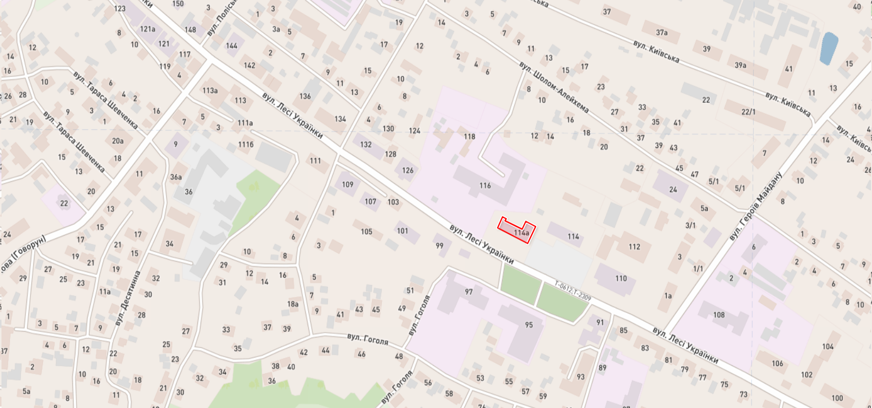 Під’їзний шлях до адміністративної будівлі за адресою вулиця Л.Українки, 114, з вулиці Л.України.